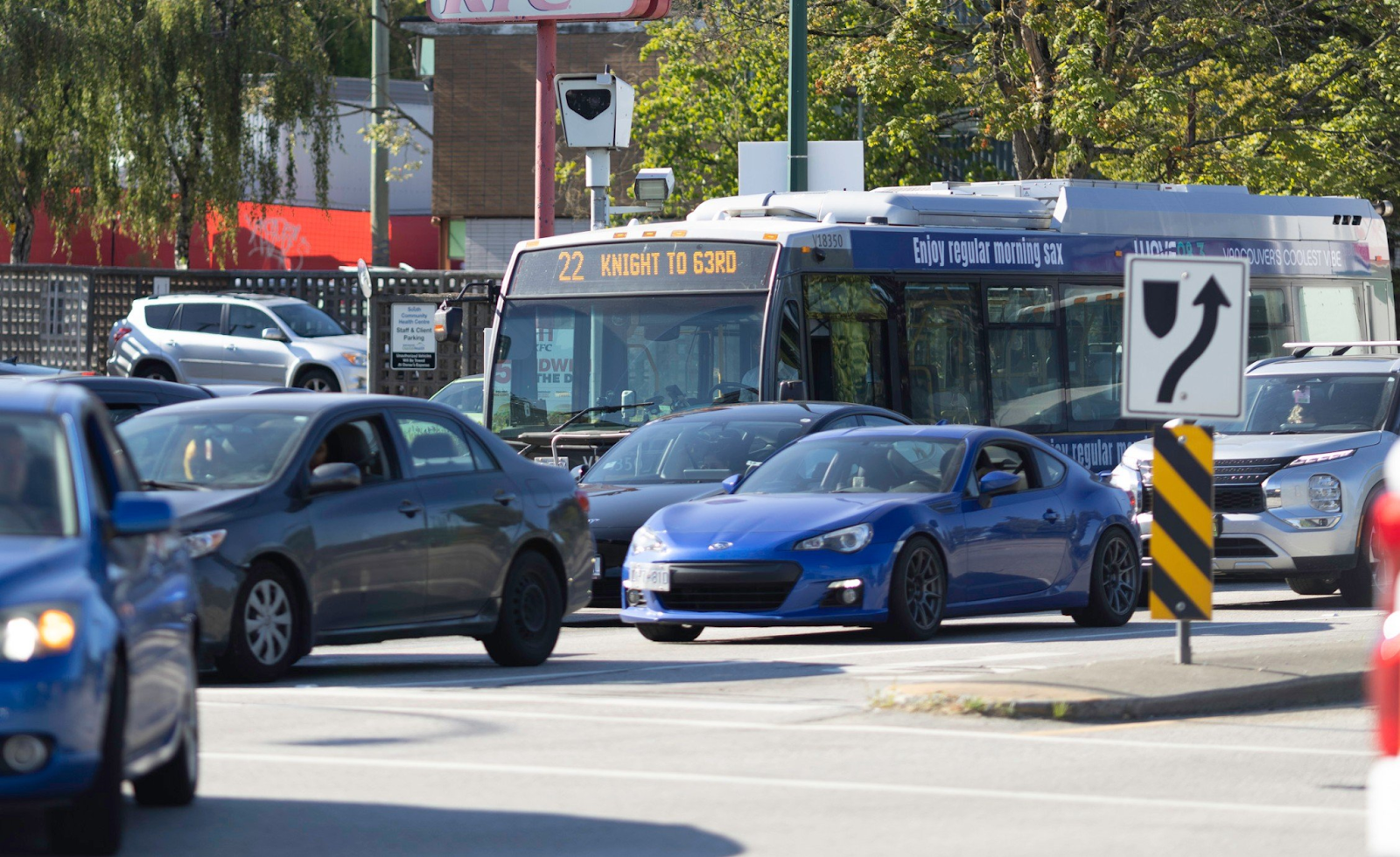 Getting people out of personal vehicles and onto transit, a much safer form of transportation, is hugely important for achieving Vision Zero. Bus priority lanes are a very impactful safety measure. One study on bus priority lanes in Melbourne1 found that collisions dropped by a statistically significant 14%, and deaths and serious injuries dropped massively by 31%. A study in Montreal2 found that buses are around four times safer for all road users compared to cars. We are so excited about what this means for Vancouver.