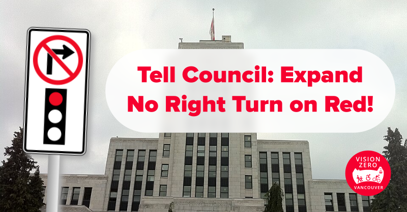 On December 10 2025, Vancouver City Council will vote on a motion brought by Councillor Lucy Maloney to restrict right turn on red at the highest risk intersections for people who walk, bike and roll in the city.