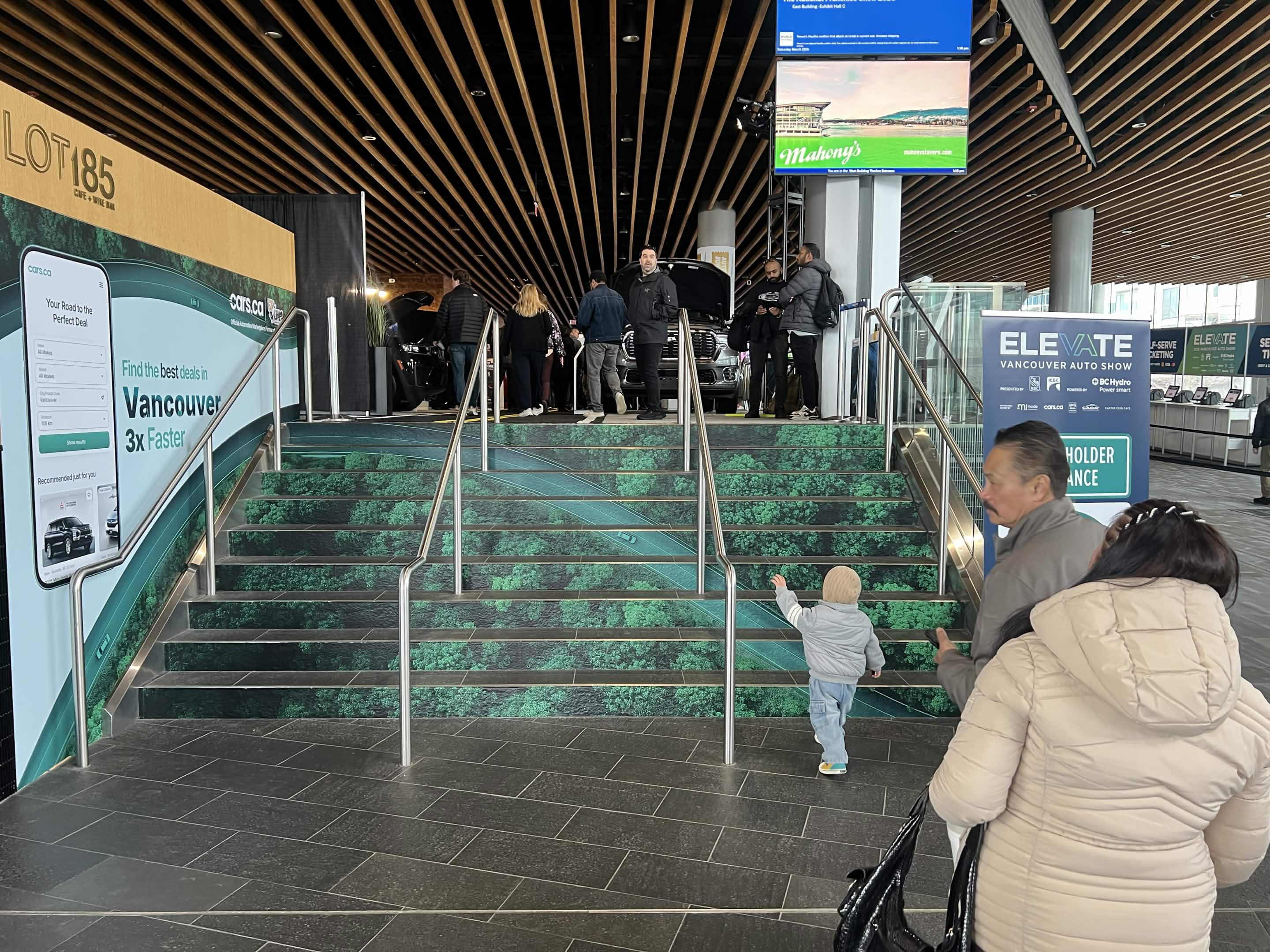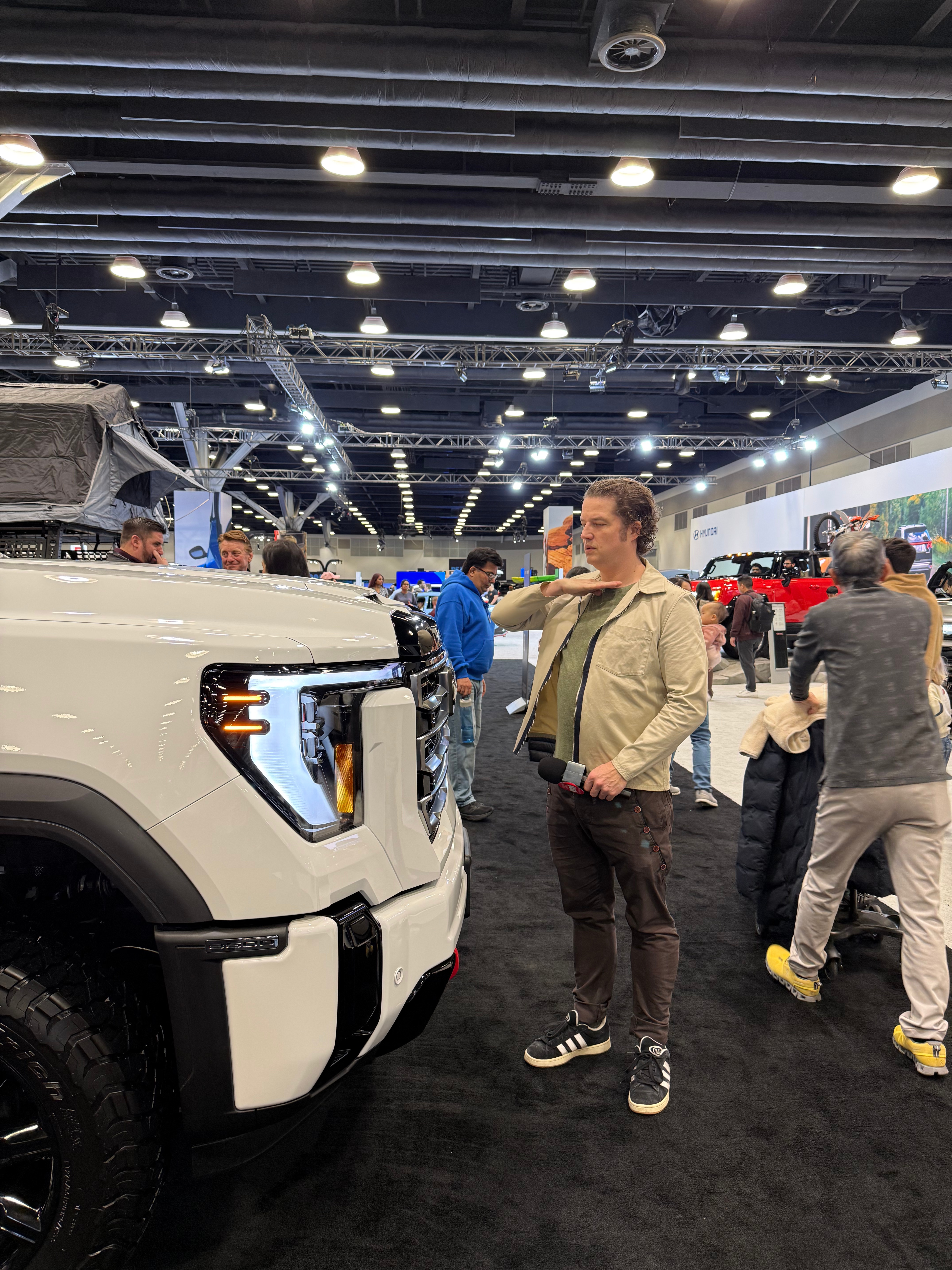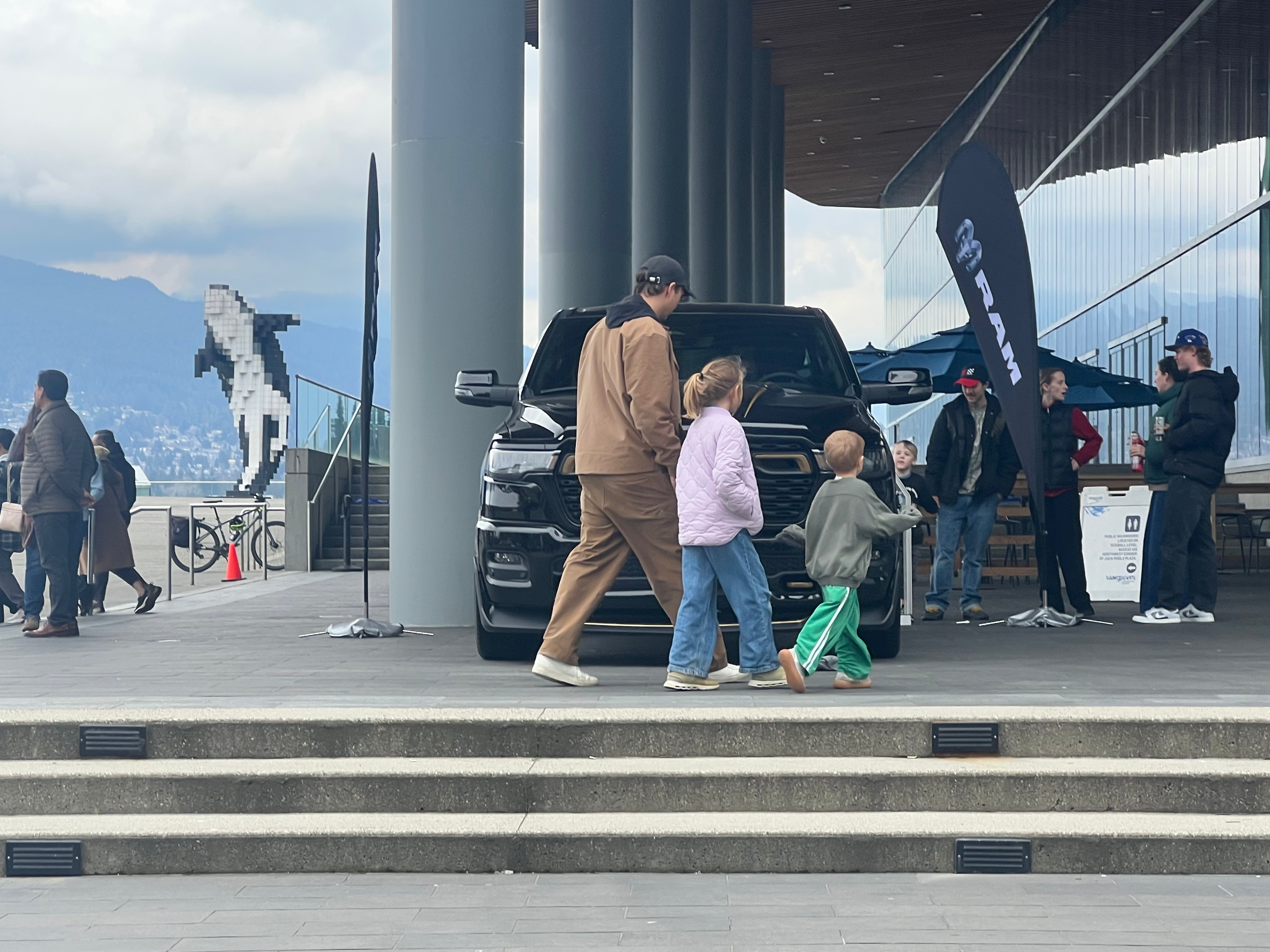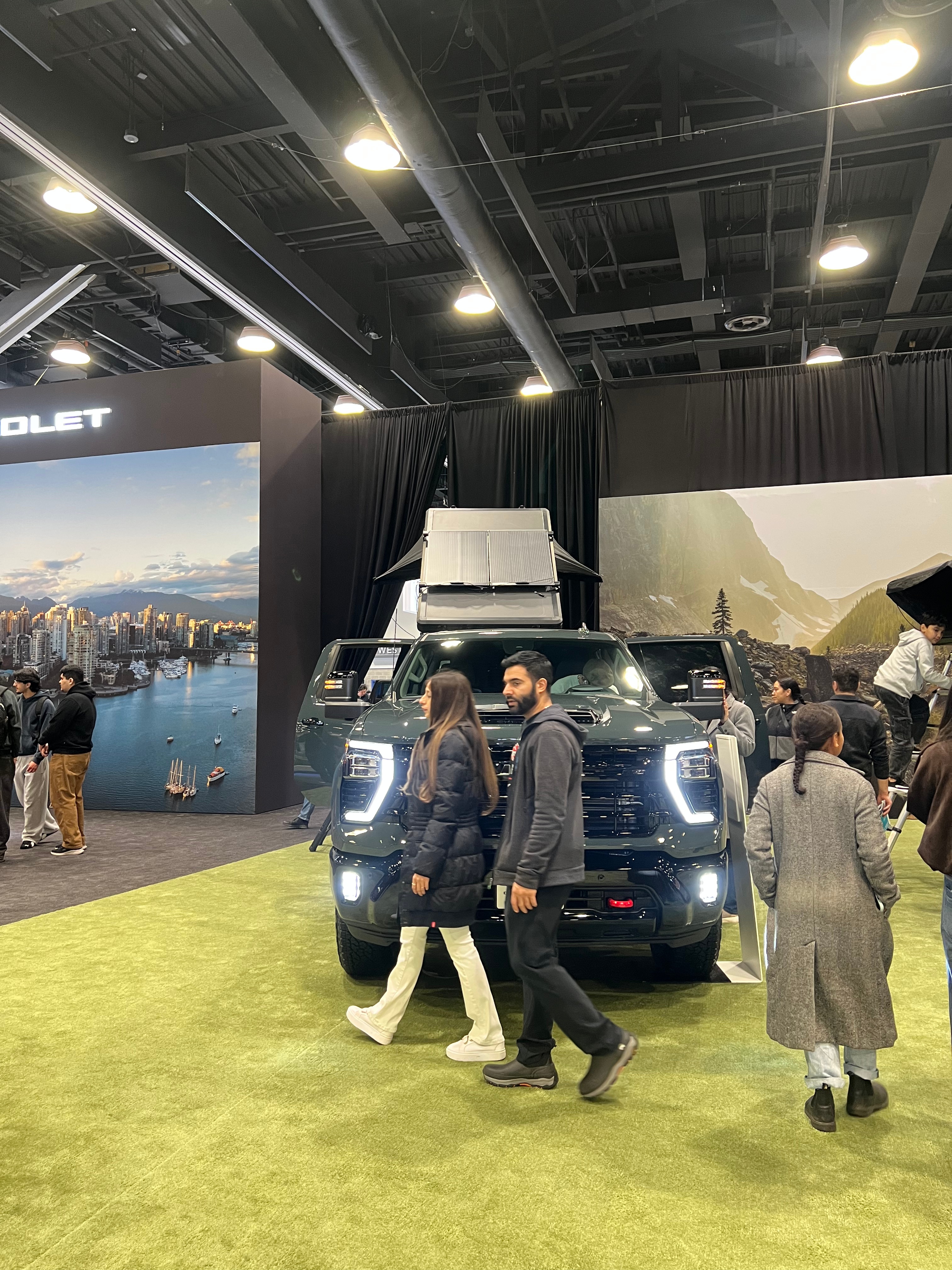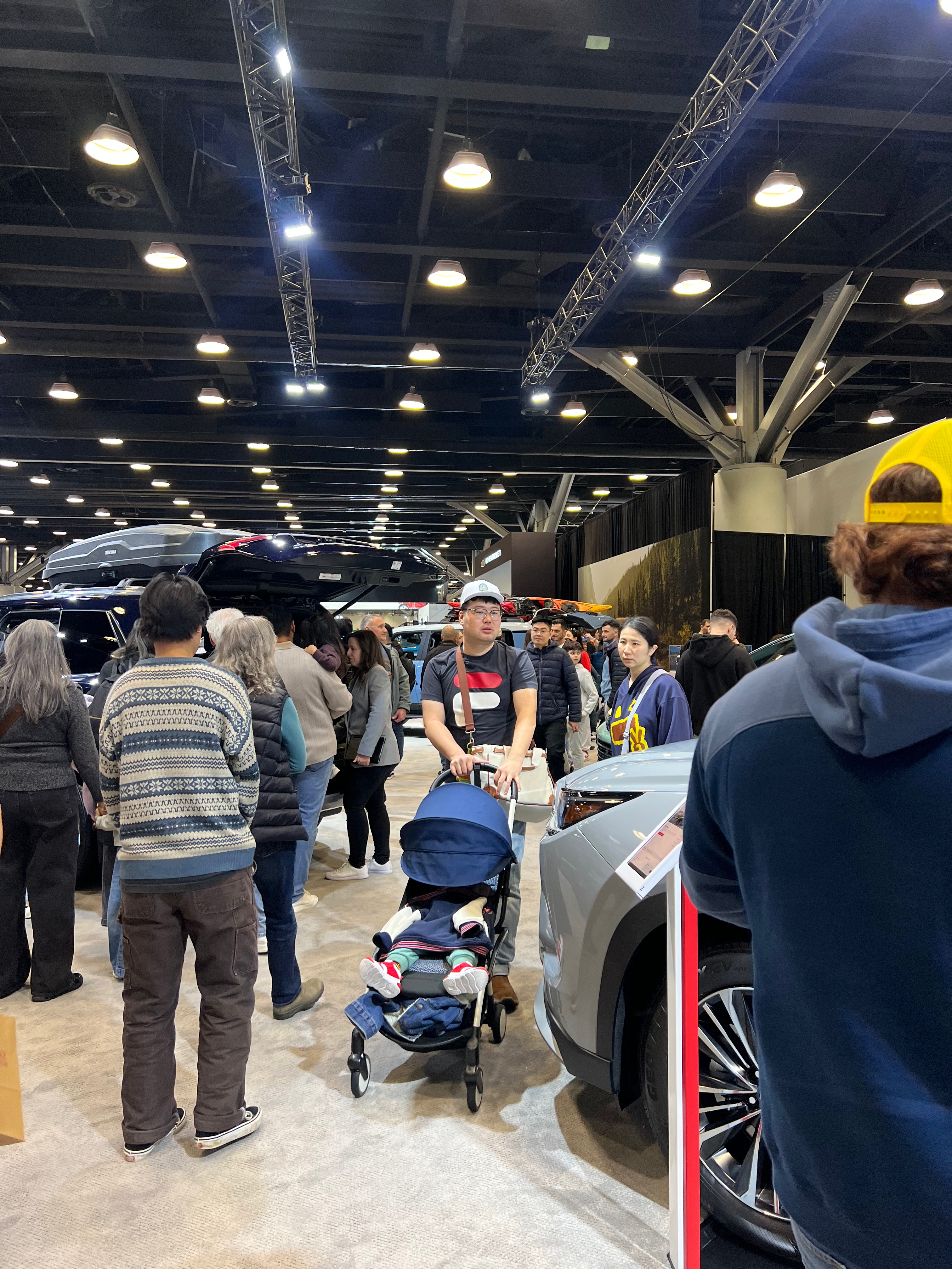The day got started with a media tour. There were more than 150 outlets there, though most were car influencers. We heard from some auto industry execs about their dislike of BC’s EV targets (which the province has since lowered), got a warm welcome from Mayor Ken Sim (who mentioned that the auto show is a lot more exciting than civic politics) and then headed downstairs to see the cars. At each display a marketing rep would give us a pitch, we’d have some time to take photos and videos, and then we’d go on to the next. The entire tour lasted three hours, ending with a media scrum with automotive influencer & Fast and Furious actor Sung Kang (you can see what he had to say about road safety here).