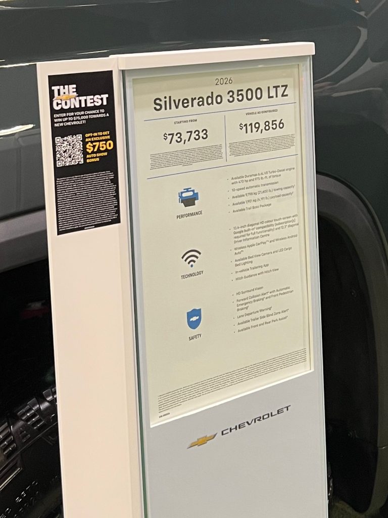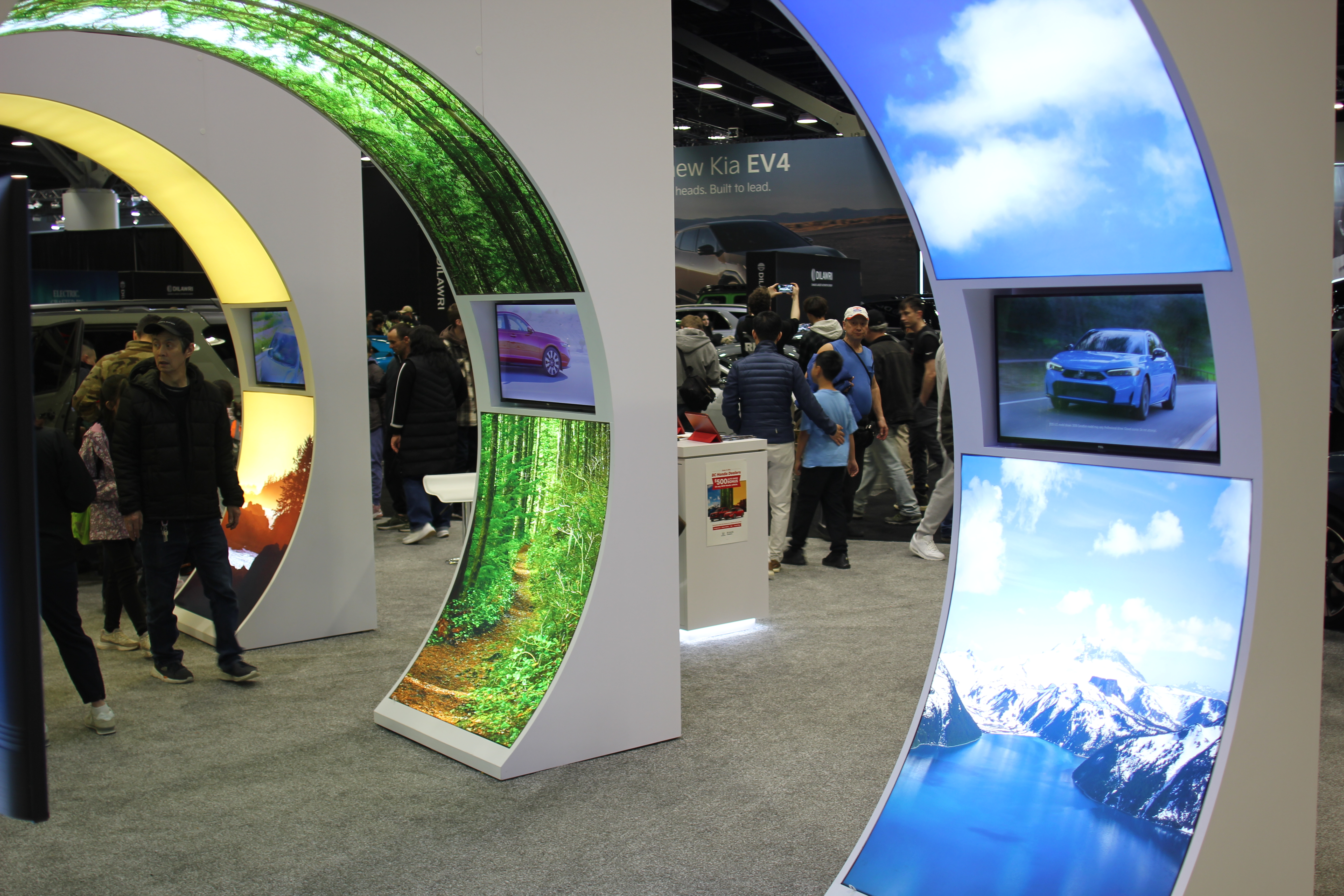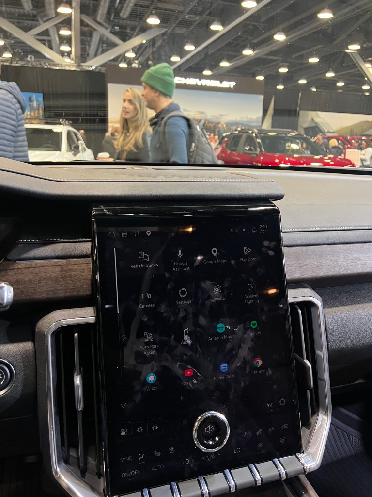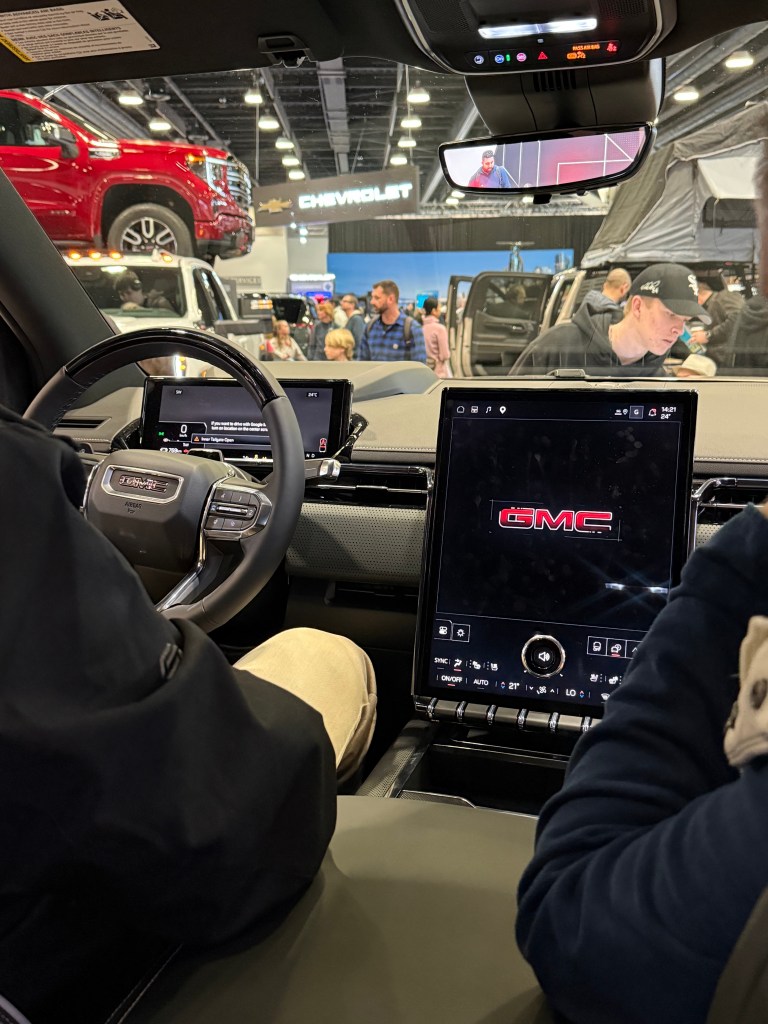We were expecting to see some very large vehicles, but what I wasn’t quite expecting was the very large screens inside. From the driver’s seat, many cars featured display screens larger than my laptop with apps like YouTube, Amazon Prime Video, and built-in games. The law in BC stipulates that “A person may not have a television image displayed within view of the driver unless the image displays pictures, information or data solely designed to assist the driver in the safe operation of the vehicle” – this was pretty hard to square with the reality of vehicles available at the show.